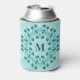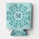 Floral Pattern, Teal Blue Initial Can Cooler