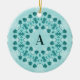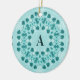 Floral Pattern, Teal Blue Initial Ceramic Ornament