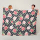 Floral Pattern White Polka Dot on Black Background Fleece Blanket