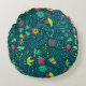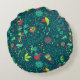 Floral pattern with cartoon birds 2 round cushion