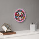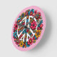 floral peace sign symbol colour illustration art pink Round wall Clock