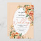 Beautiful peach, pastel orange colour floral wedding invitation. Simplicity with a hint of elegance at its best. The main portion of the invitation is in a oval peach framed framed area, Perfect for any season wedding.