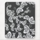 This design features an original illustration of a stylised boho white floral peacock with an elegant tail made up of paisley shapes decorated with flowers.