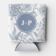 Floral Periwinkle Blue Monogram Wedding Can Cooler