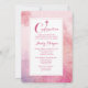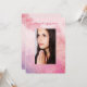 A modern and beautiful design with muted floral and leaf images blended in hues of pink and mauve. The featured cross in the back can be eliminated making this a versatile invitation. (FP)