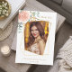 Front: a faux gold geometric photo frame. Decorated with a rose gold rose, flower and eucalyptus greenery. Personalise and add a photo, your name and date.