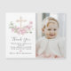 Floral Pink Baptism Cross Thank you Photo Magnet