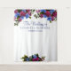 Elegant photo booth custom wedding couple backdrop with beautiful fuchsia pink and dark blue flowers with foliage and leaves. Easy to personalise with your event's title, name, and date.