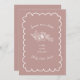 Hand drawn scalloped border with text and line art floral illustration over pink background.