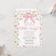 Sweet pink bow and pink floral pattern first birthday invitation for baby girl also featuring a non editable pink modern calligraphy heading.