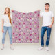 Floral Pink Modern Dianthus & Daisy Hand-Drawn Fleece Blanket