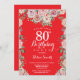 Floral Pink Peonies 80th Birthday Red Invitation for Women. Watercolor Floral Flower. Elegant Pink Rose and Peony Flowers. Adult Birthday. Red Background. 13th 15th 16th 18th 20th 21st 30th 40th 50th 60th 70th 80th 90th 100th, Any Ages. For further customisation, please click the "Customise it" button and use our design tool to modify this template.