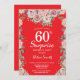 Floral Pink Peonies Surprise 60th Birthday Red Invitation