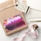 Make a lasting impression with this lovely and elegant monogrammed product label design featuring many different colourful flowers on a pink and purple gradient background with a shimmery frame.