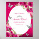 Floral Pink Silver Tiara Butterfly Quinceañera Poster
