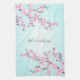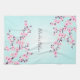 Floral Pink Turquoise Cherry Blossoms Personalise Tea Towel
