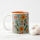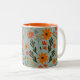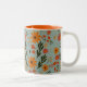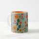 Floral pattern mug. Digital drawing pattern with flowers in warm tones on sage green.