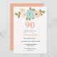 Floral Pretty Peach 90th Birthday Invitation