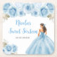 This sweet sixteen coaster features a beautiful princess in a blue ball gown with floral arrangements. This is perfect for a sweet sixteen birthday party.