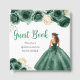 Floral Princess in Dark Green Dress Quinceanera Guest Book