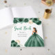 This quinceanera guest book features a beautiful princess in a dark green ball gown with floral arrangements. This is perfect for a quinceanera birthday party.