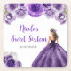 This sweet sixteen coaster features a beautiful princess in a dark purple ball gown with floral arrangements. This is perfect for a sweet sixteen birthday party.