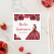 This Quinceanera napkin features a beautiful princess in a burgundy red ball gown with floral arrangements. This is perfect for a Quinceanera birthday party.