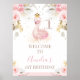 Pink Floral Rose Princess Swan 1st Birthday Welcome Sign