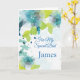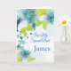 Imagine this fresh floral watercolor-look printed father's day card being opened by your special father with his custom name on it. Hues of Blues & Greens on a crisp White background. Greeting printed inside. Customise her name by choosing menu at right, click on "Name" and change text. Customise further or buy as is.