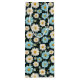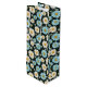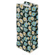This wine size paper gift bag is shown in a lovely blue and white daisy floral print on a dark colour background.