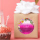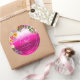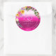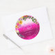 Make a lasting impression with this lovely and elegant monogrammed product label design featuring many different colourful flowers on a pink and purple gradient background with a shimmery frame.