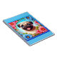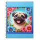 This everyday use notebook features a cheerful Pug, surrounded by bright flowers.