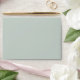 Add a finishing touch to your baby shower invitations with the elegant envelope, featuring a soft sage green exterior and watercolor pumpkins and greenery on the inside.