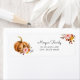 This stylish autumn return address label features a blue pumpkin and floral elements. Customise with your wording. Click "Customise further" to edit the font style, size and colour if desired.