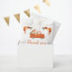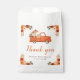 Rustic baby shower favour bag with a pumpkin truck, orange and beige pumpkins and floral flower arrangements. Perfect for an autumn fall baby shower. The words can be changed to suit your own details or requirements