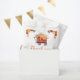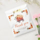 Rustic baby shower favour bag with a pumpkin wagon, orange and beige pumpkins and floral flower arrangements. Perfect for an autumn fall baby shower. The words can be changed to suit your own details or requirements
