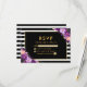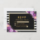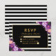 Floral Purple Gold Striped Black RSVP Wedding Card