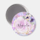 Girly and chic magnet with purple marble rainbow unicorn swirls, a gold floral frame with blue and peach flowers, and a blush pink background. Your custom name and monogram are written in an elegant hand lettered script. You can change the text colour and font style and size using the customise option.