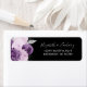 The left-hand edge of this elegant modern wedding invitation features a floral bouquet in shades of purple and lavender, trimmed with silver faux foil and faux glitter foliage and sprinkled with silver faux glitter. The customisable text combines silver grey handwriting and copperplate fonts on a black background.