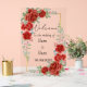 Floral red acrylic wedding sign. It can be customized to your preferences.