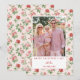 This floral valentine's day photo card is the perfect Valentine card to send out showcasing a photo. A vintage design with a patterned background covered in a red and pink roses frames a valentine photo, with an editable Happy Valentine's Day message in red serif text.