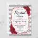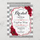Floral Red Silver Stripes Bridal Shower Invitation.
