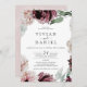 This floral romance all in one wedding invitation is perfect for an elegant wedding. The modern rustic boho design features romantic watercolor flowers in soft tones of burgundy, mauve, blush pink and cream white with green leaves. Save paper by including the details on the back of the wedding invitation instead of on a separate enclosure card. Include the RSVP info as well if your guest will be replying electronically (optional).