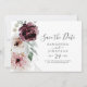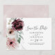This floral romance horizontal save the date card is perfect for an elegant wedding. The modern rustic boho design features romantic watercolor flowers in soft tones of burgundy, mauve, blush pink and cream white with green leaves.