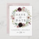 This floral romance save the date announcement postcard is perfect for an elegant wedding. The modern rustic boho design features romantic watercolor flowers in soft tones of burgundy, mauve, blush pink and cream white with green leaves.