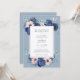An elegant, watercolor navy blue floral rose and foliage design Wedding Invitation with a dusty blue background colour theme. This classy and stylish card is ready for you to customise with fonts of your choice or leave as shown here and add your details for your special day.