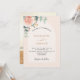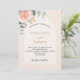 A blush rose gold background with an arch. Decorated with a rose gold and pink floral, rose flower and green watercolored eucalyptus greenery. Personalise and add your names and details.