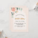 A blush rose gold background with an arch. Decorated with a rose gold and pink floral, rose flower and green watercolored eucalyptus greenery. Personalise and add your name and party details.