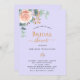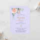 A trendy violet, lavender coloured background. Decorated with a rose gold and blush pink floral, rose flower and green watercolored eucalyptus leaves, sprigs, greenery and a faux gold sprig. Personalise and add the name of the bride to be and party details. Black and golden coloured letters.