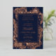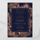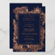 A modern hand drawn elegant floral real rose gold foil illustration with frame wedding invitation on navy blue. Perfect for elegant, chic wedding.